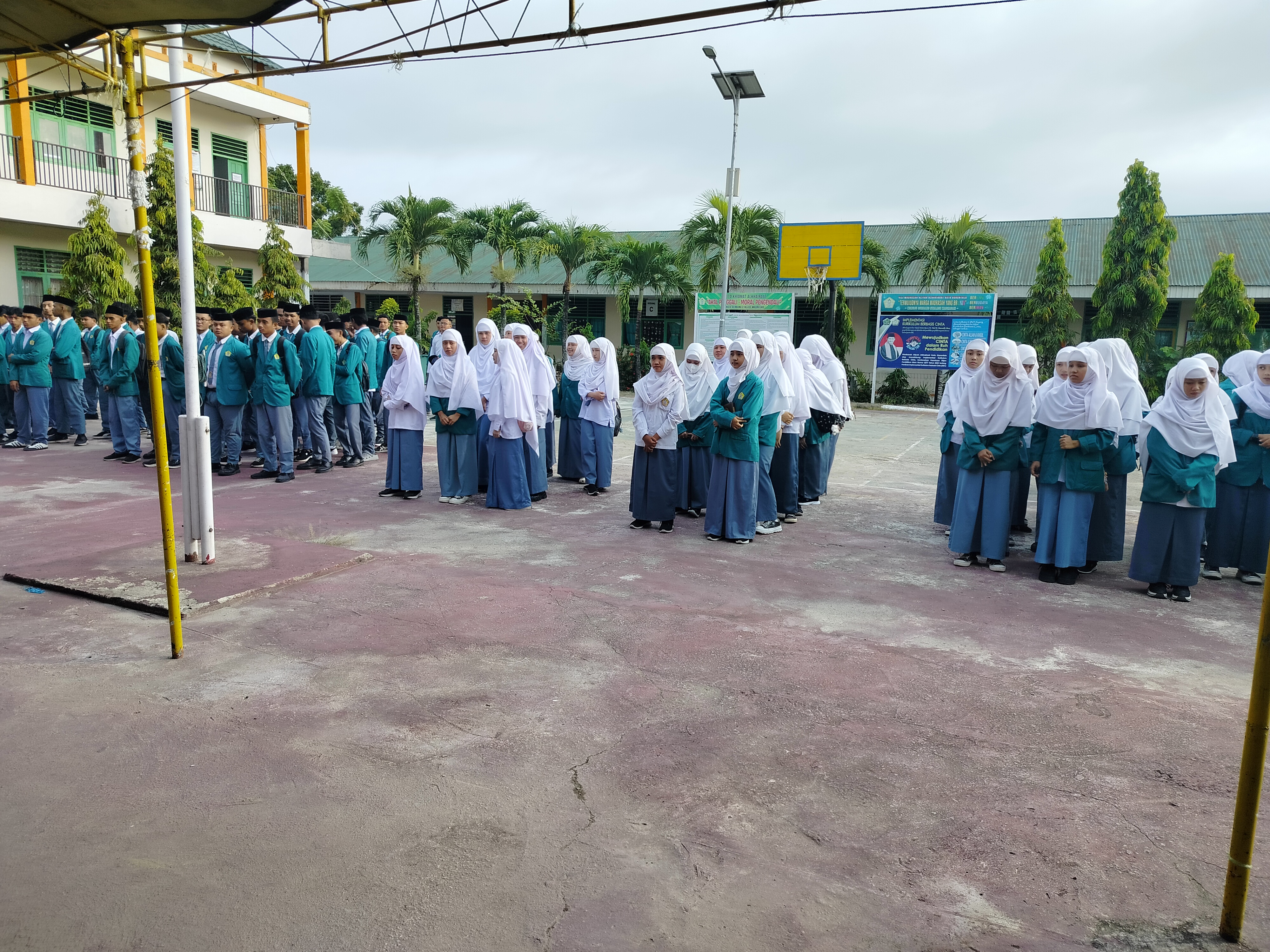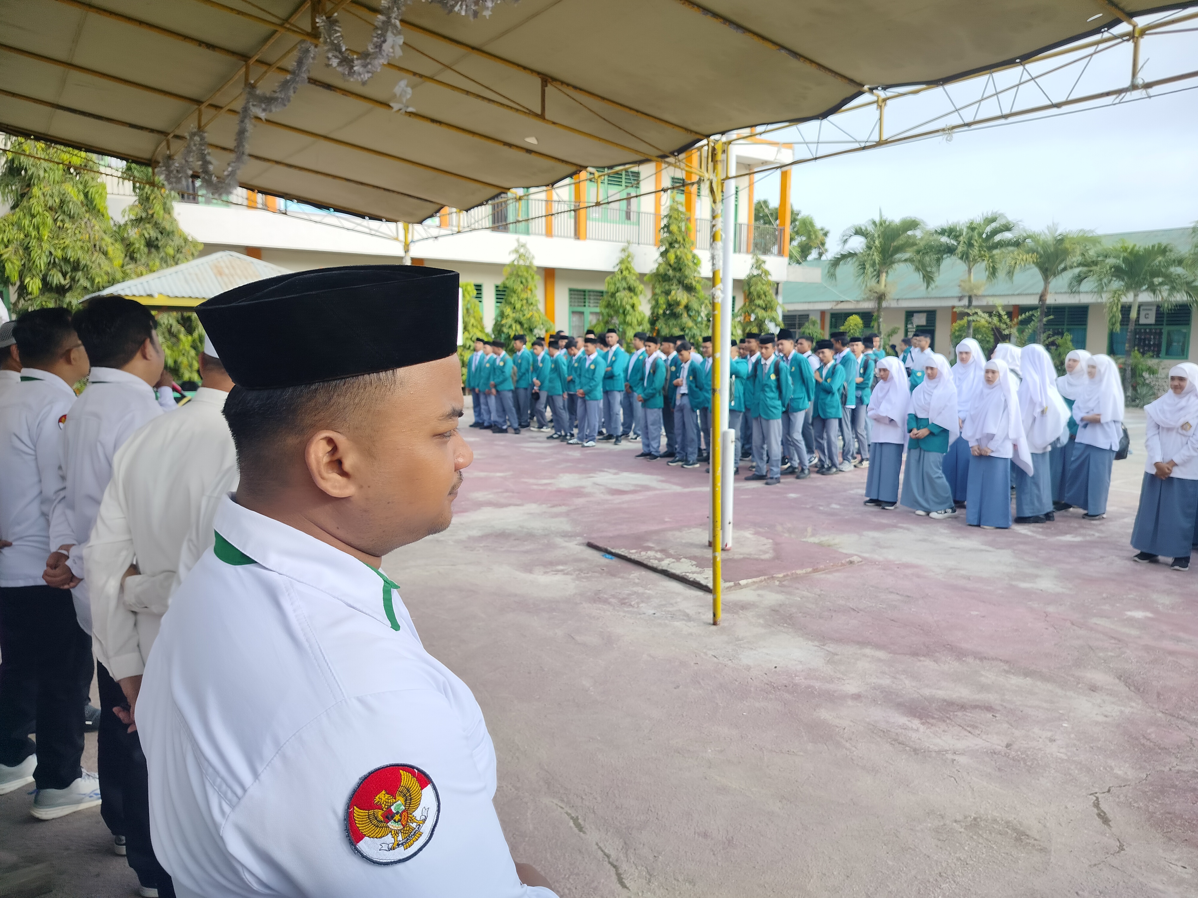 Humas MA Alkhairaat Kota Gorontalo - Aktivitas kegiatan belajar dan mengajar kembali digelar pasca libur akhir bulan suci Ramadhan dan Hari Raya Idul Fitri 1447 H. Sebagai awalan dari proses belajar mengajar di hari pertama masuk madrasah, seluruh santri bersama staff dewan guru dan pegawai tata usaha mengikuti apel dan mendengarkan arahan dari kepala madrasah yang bertempat di halaman madrasah pada Senin (30/03/2026).
